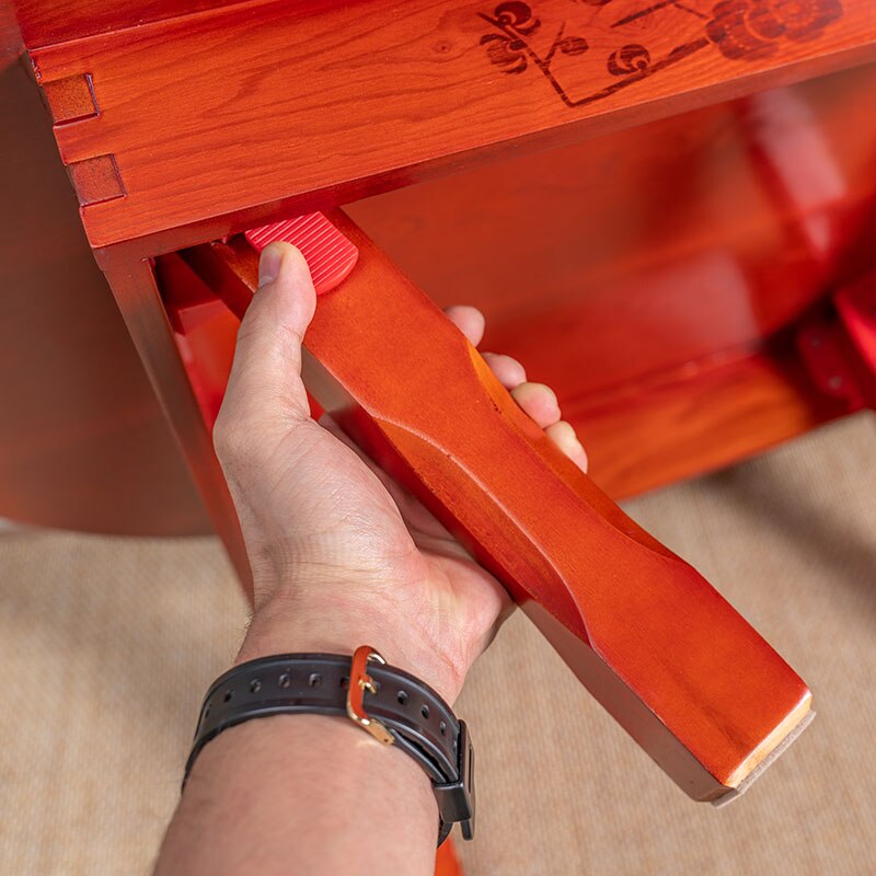 This Japanese Table features a folding design for simple storage and convenience.